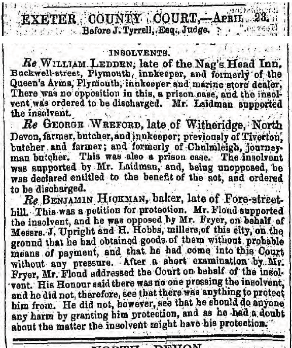 The last time I looked into the financial woes of my ancestor George Wreford, I wanted a simple explanation into the change in bankruptcy laws in 1861. I’ve since learned the key to understanding is knowing the difference between bankruptcy and insolvency.
